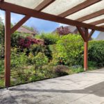 Die überdachte Terrasse und der vordere Gartenteil sind nach Süden ausgerichtet.