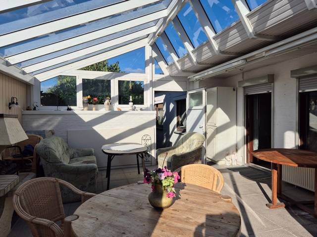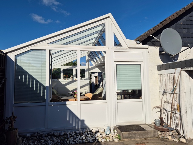 Das Erdgeschoss verfügt über einen gemütlichen Wohnbereich, den großen Wintergarten, eine separate Küche, zwei Schlafzimmer, ein Tageslichtbad sowie ein Gäste-WC.